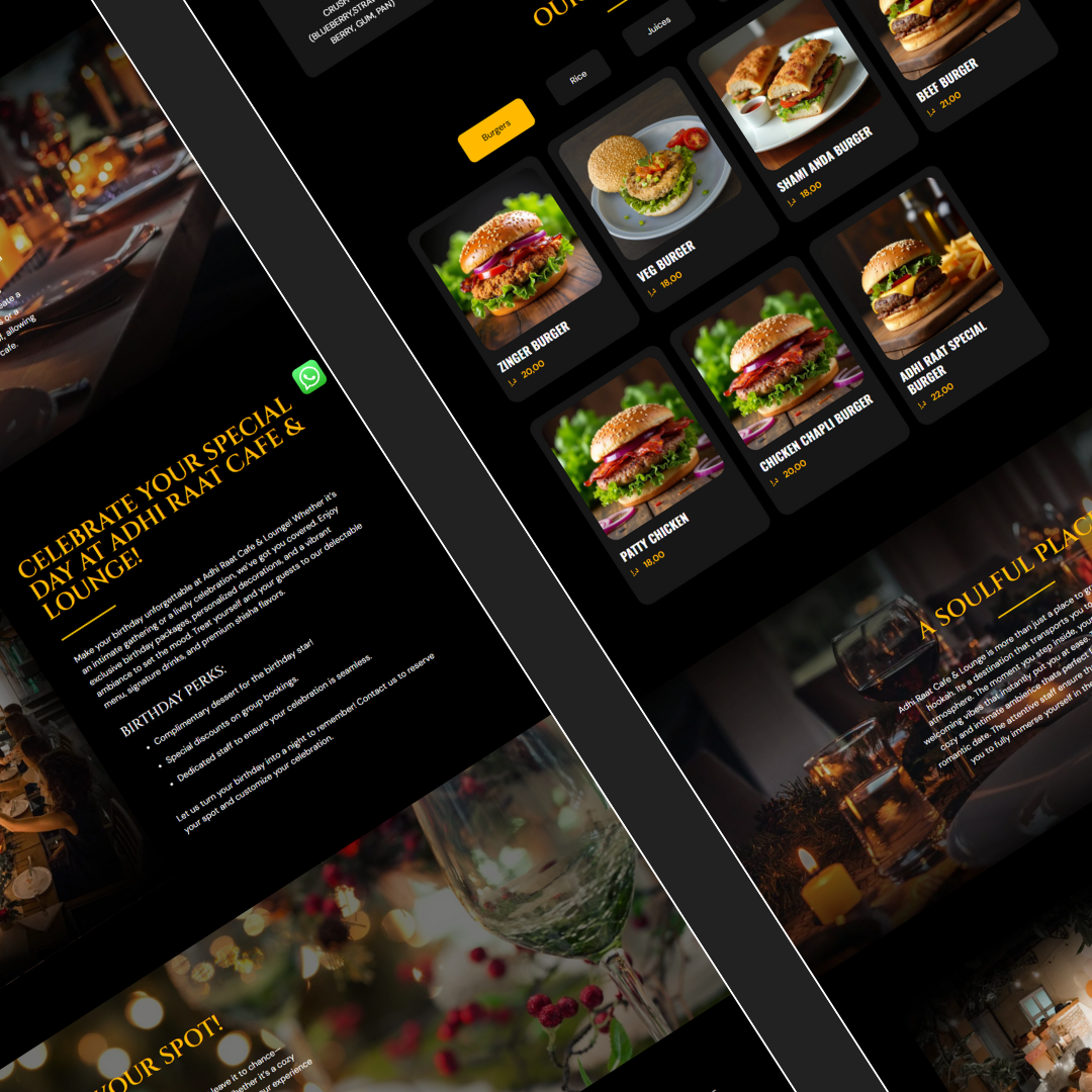 I created a modern and vibrant WordPress website for Adhi Raat Café, designed to reflect its cozy ambiance and late-night dining vibe. The site features dynamic menu displays, photo galleries, and online booking options, all built with Elementor for easy customization. With fast load times, responsive layouts, and strong local SEO integration, the website helps attract nearby customers and improve online visibility. The aesthetic design perfectly balances warmth and functionality, giving visitors a taste of the café’s unique atmosphere before they even arrive.