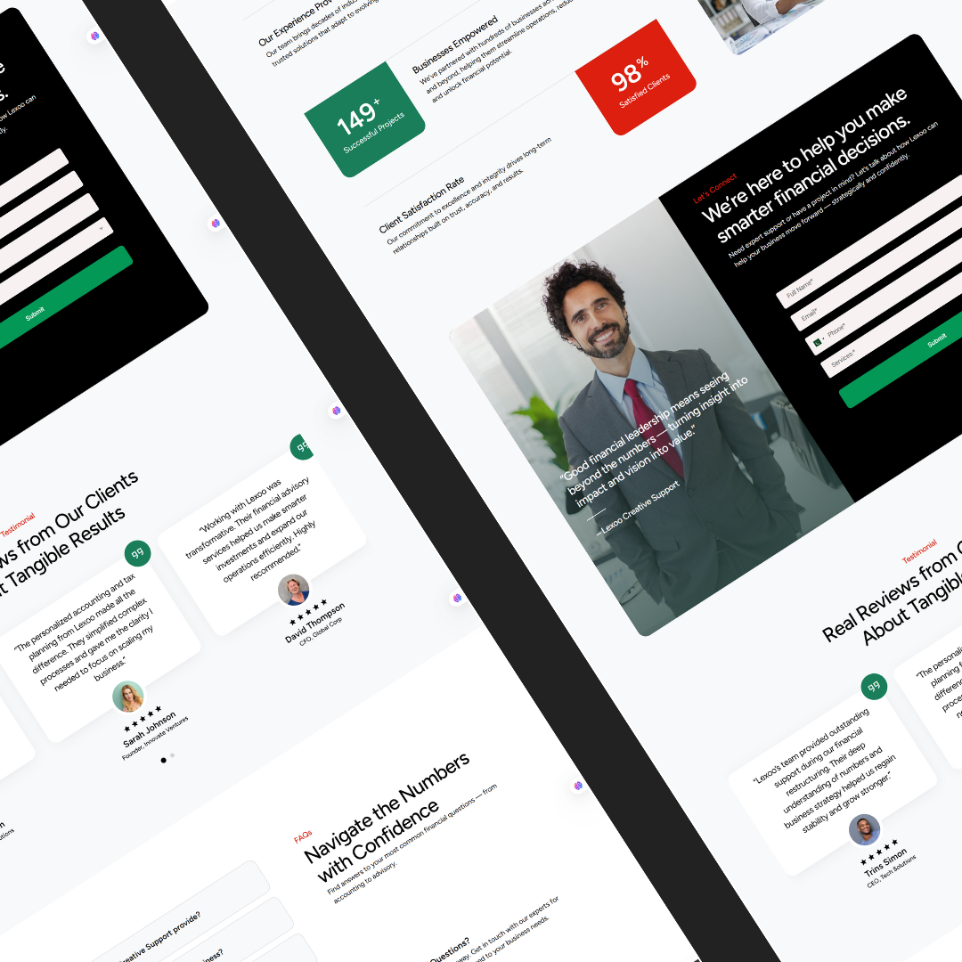 I created a professional business website for Lexoo Corporate Solutions, a firm specializing in CFO outsourcing and business advisory. Built on WordPress with Elementor, the site features a clean, corporate layout that clearly communicates Lexoo’s strategic services and results-driven approach. The design emphasizes clarity, professionalism, and conversion, with structured service pages, a modern color palette, and intuitive navigation. Fully SEO-optimized and mobile-responsive, the website enhances Lexoo’s digital authority, improves visibility on search engines, and positions the brand as a trusted financial partner for growing businesses.
